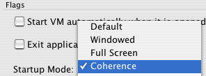 Damit Parallels in Kohärenz Modus starten, müssen Sie dies unter Edit->Configuration einstellen: