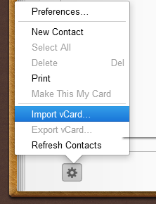 On MAC OS you can just drag & drop the vcard file to the iCloud address book in your browser.
